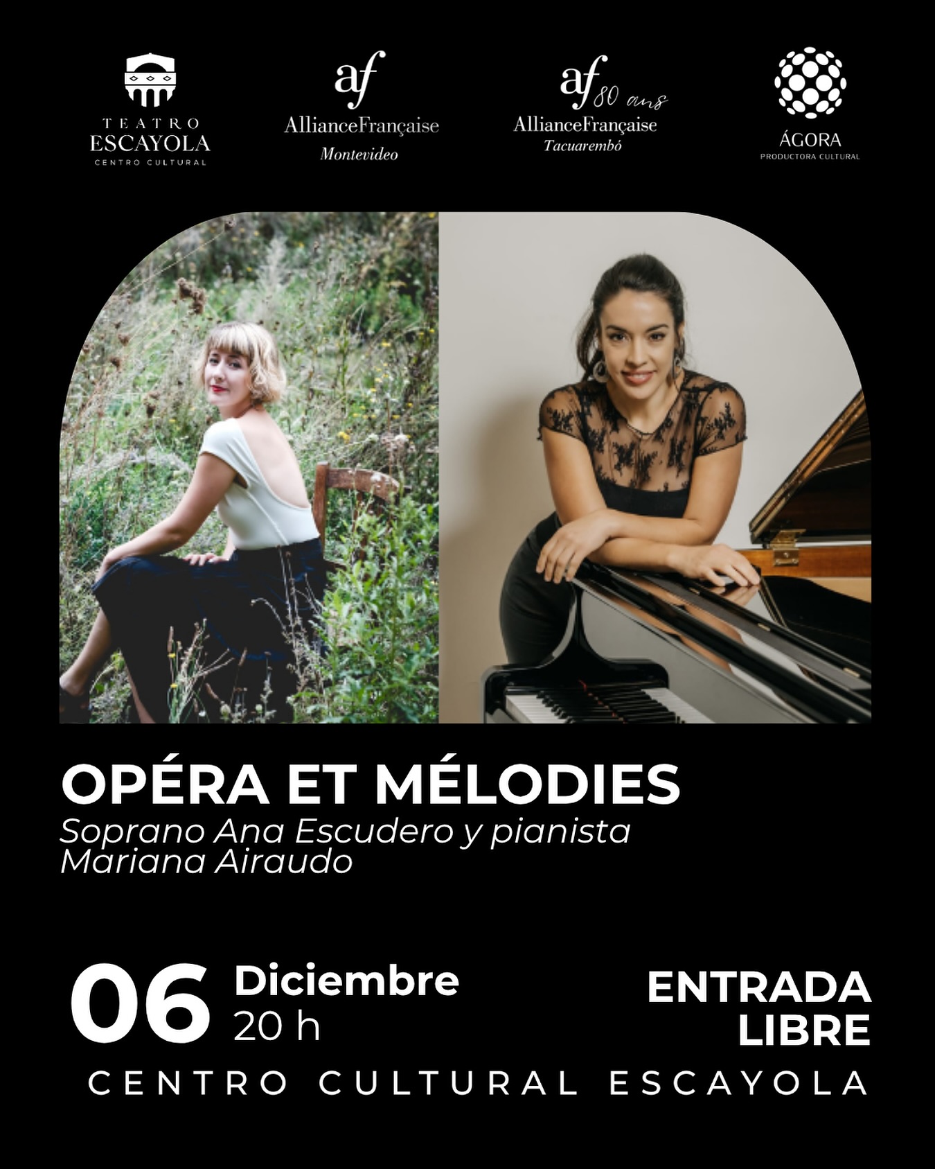 La Alianza Francesa de Tacuarembó presenta “Opéra et mélodies”, un refinado recital a cargo de la soprano Ana Escudero, artista uruguaya con una destacada trayectoria en Francia, acompañada al piano por la talentosa Mariana Airaudo.