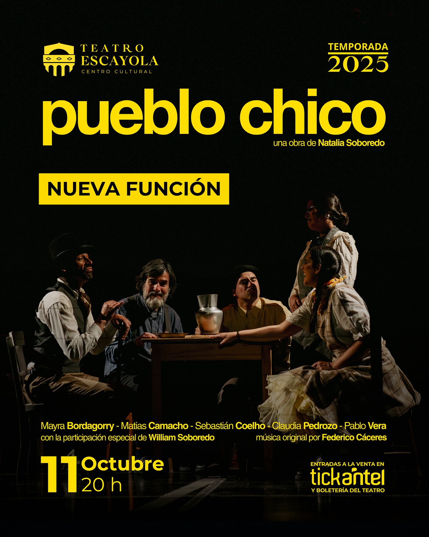 La nueva obra teatral “Pueblo Chico” de Natalia Soboredo, con elenco 100% tacuaremboense, invita al público a sumergirse en una comedia tan absurda como conmovedora, donde la línea entre la fe ciega y la demencia es tan delgada