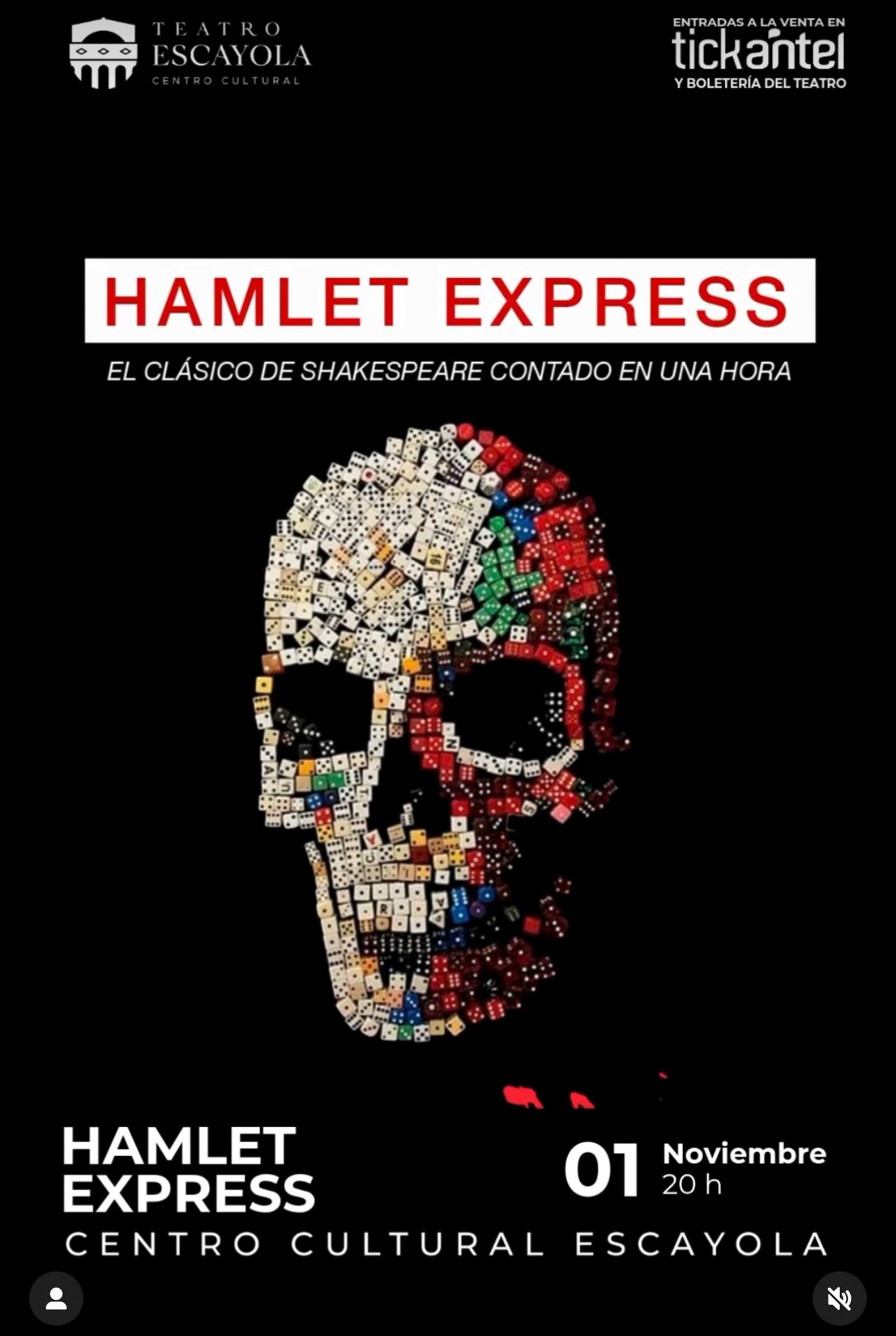 El próximo sábado 1 de noviembre, a las 20:00 horas, el Teatro Escayola tendrá la presentación de la obra «Hamlet Express», una adaptación contemporánea basada en la tragedia «Hamlet» de William Shakespeare.