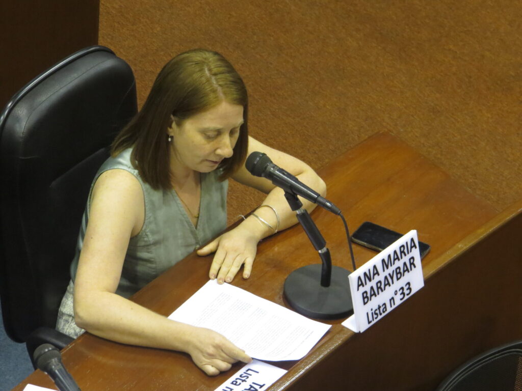 La suplente de edila Mtra. Ana Baráybar (Frente Amplio) centró su intervención en la calidad de las obras viales en la ciudad, a raíz de videos que mostraban desprendimiento de material en calles con riego bituminoso tras los primeros calores.