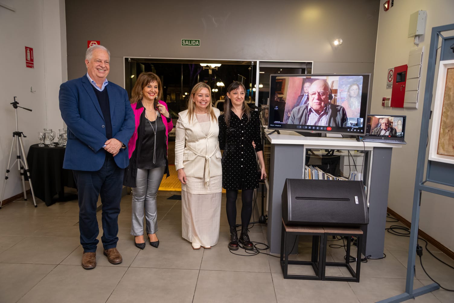 La ceremonia contó con la destacada presencia del intendente de Tacuarembó, Wilson Ezquerra, y un momento culminante que emocionó a todos: una interacción virtual por Zoom con el propio Osvaldo Leite, quien participó visiblemente conmovido desde Bélgica, a más de diez mil kilómetros de distancia.